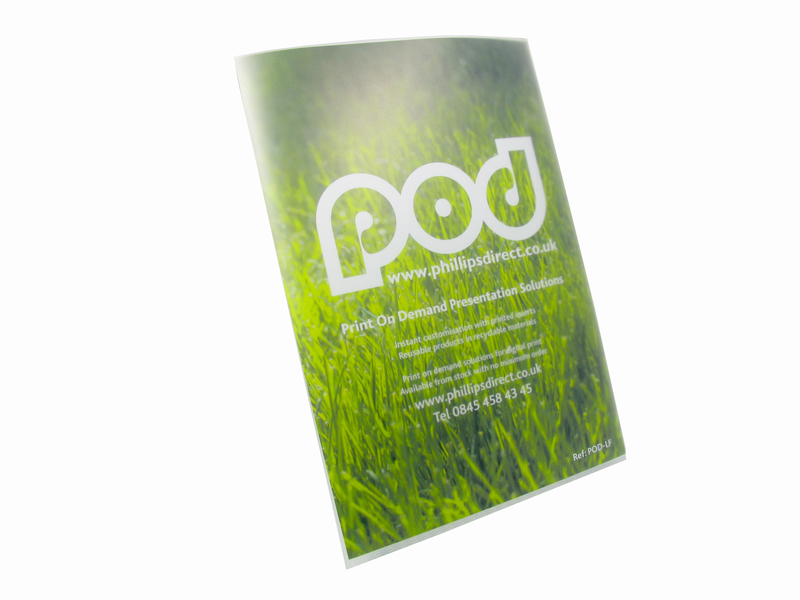 For a professional custom folder solution. Insert your own print or order online withprinted inserts supplied from your artwork. The front cover of this letter file can be quickly customised using the Print on Demand display pocket and is perfect for professional looking low capacity document solutions such as quotations, A4 brochure sheets, price lists, contract, reports and proposals.