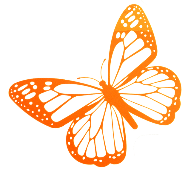 3 SIZES OF BUTTERFLIES PRINTED ON CLEAR SELF CLING IN ORANGE.